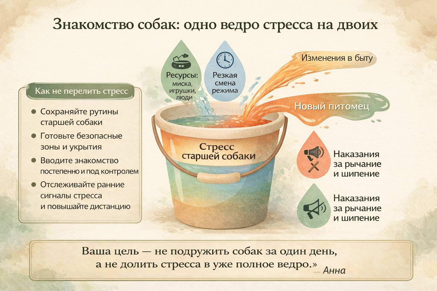 Метафора «ведро стресса» помогает понять реакцию старшей собаки.