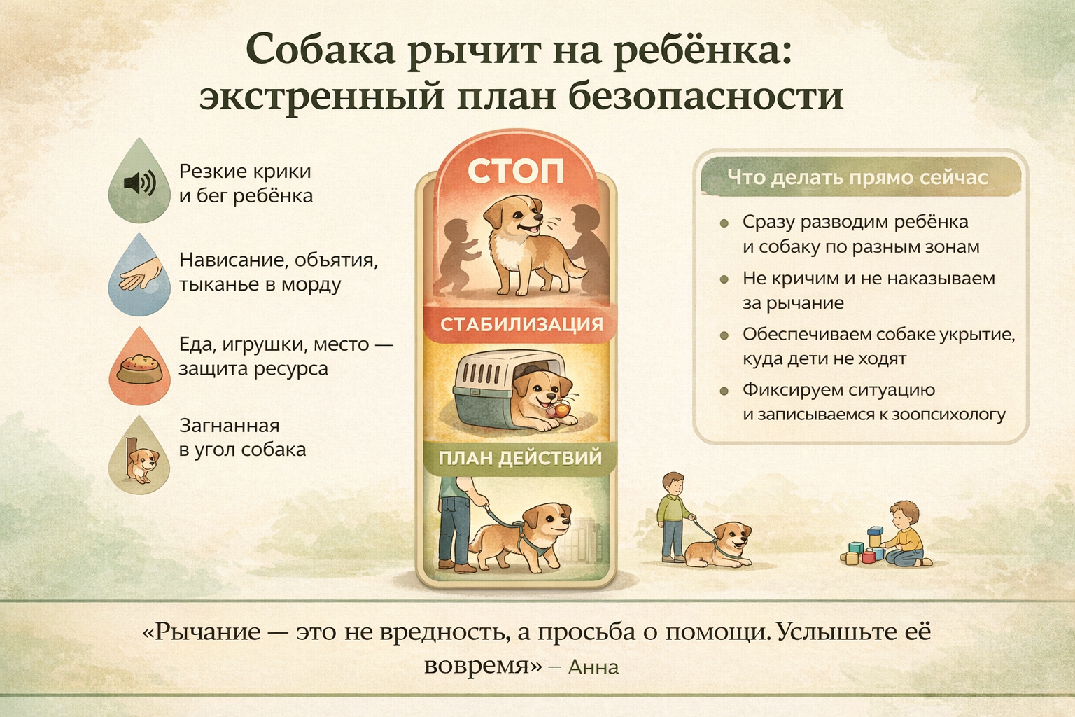 Визуальный экстренный план действий, если собака рычит на ребёнка.