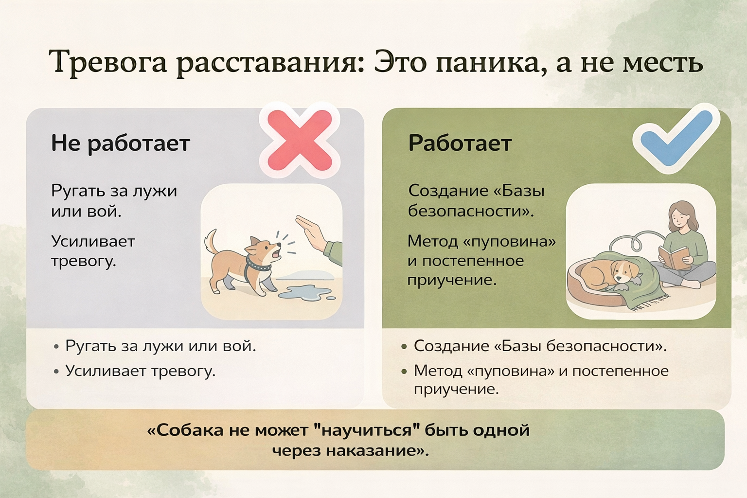 Об авторе. Анна — специалист по коррекции поведения собак (Korektika-Pes). Работает гуманными методами, без боли и давления. Помогает щенкам и тревожным собакам мягко адаптироваться в семье. Больше о поведении собак — в канале Собака мечты. Быстрые ответы на вопросы — в боте Кинолог в кармане.